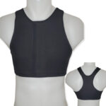 This postoperative binder ‘black’ is designed to be worn after a mastectomy (breast removal surgery) and is therefore suitable for safe binding. It is worn to apply pressure to the surgical area. The compression ensures that the skin remains tightly against the breast tissue, preventing fluid buildup and promoting proper healing. This can help reduce swelling, support wound healing, and stabilize tissue. Specifically for mastectomies, this postoperative binder can help support the chest area, keep any drains in place, and provide comfort during the healing process.